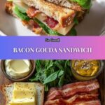 A delicious and comforting Bacon Gouda Sandwich combining crispy bacon, melted smoked Gouda cheese, fresh baby spinach, and a hint of honey mustard, all toasted to golden perfection on sourdough bread.