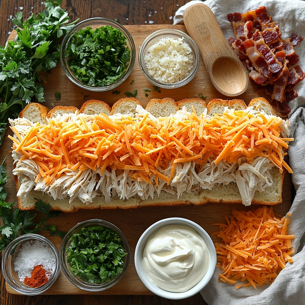 The beauty of this Chicken Stuffed French Bread Recipe lies in its straightforward ingredients that work together harmoniously to create bold flavors, satisfying textures, and a colorful presentation. Each element has a purpose, from creamy bases to sharp cheeses and fresh herbs.