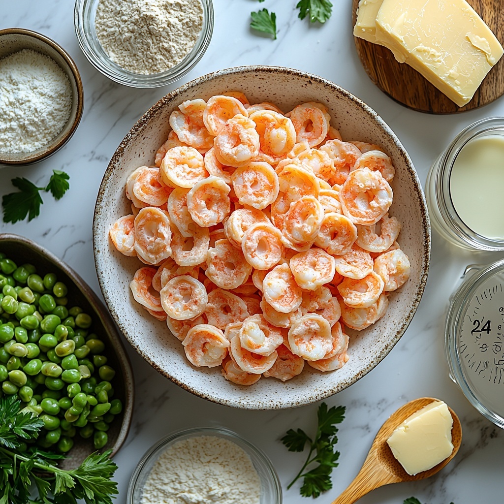 These ingredients are straightforward but pack a powerful punch in building layers of flavor and texture. Each component, from the fresh shrimp to the creamy cheese sauce, plays a crucial role in transforming simple pantry staples into a luxurious dinner.