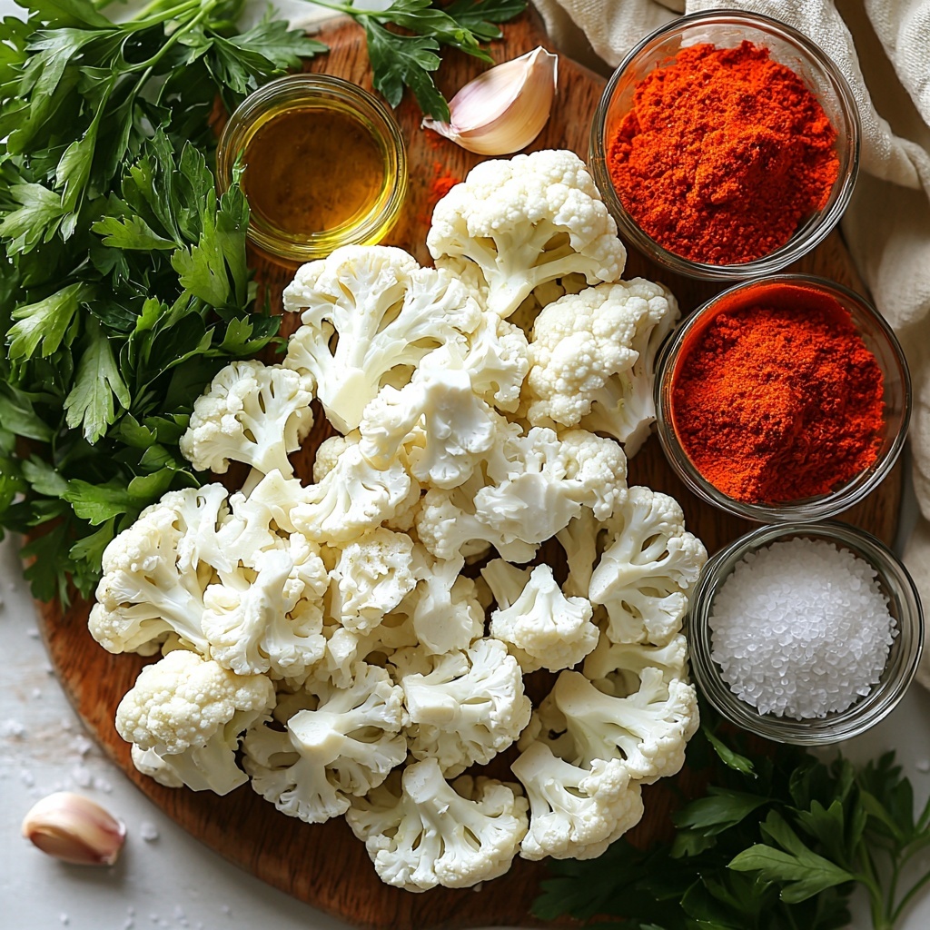 Wash your cauliflower thoroughly and dry it well to avoid sogginess in the oven. Cut it into even-sized florets so they cook uniformly — no one wants little burned bits mixed with underdone pieces. Uniformity will be your best friend here!