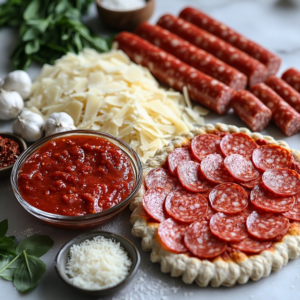 This recipe is delightfully simple yet packed with essentials that bring texture, flavor, and that classic pizza vibe right to your kitchen. Each ingredient plays a starring role to create layers of taste from savory meat to bubbling cheesy goodness.