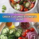 A refreshing and vibrant Greek Cucumber Tomato Salad featuring crisp cucumbers, juicy cherry tomatoes, and a tangy homemade dressing with olive oil, red wine vinegar, and herbs. Perfect for a light, healthy side dish or a quick snack.