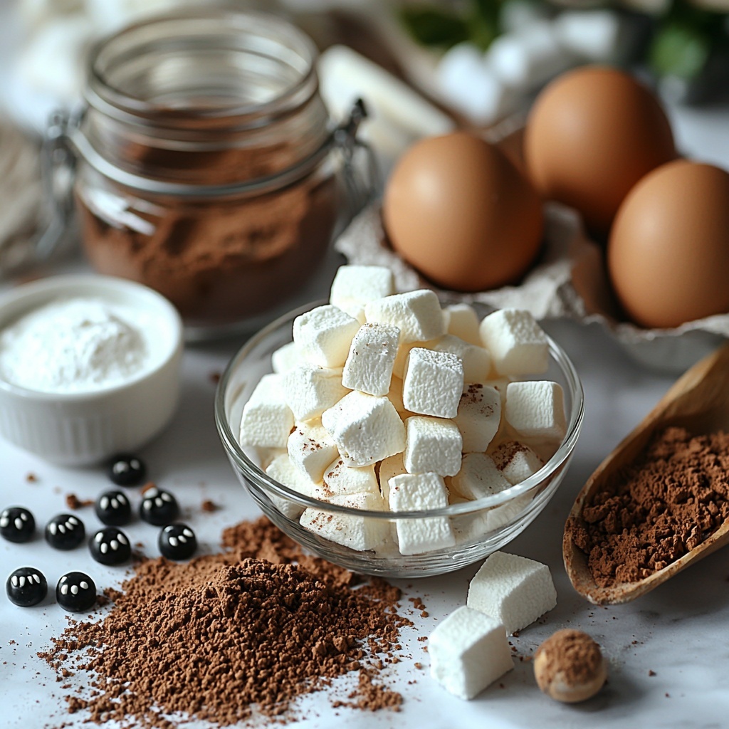 The ingredients for this Halloween Ghost Cupcakes Recipe are wonderfully simple yet carefully chosen to create that perfect balance of texture, flavor, and eye-catching color. Each component plays a vital role, from the cocoa powder that gives a deep chocolate base to the candy melts that transform ordinary marshmallows into spooky ghosts.