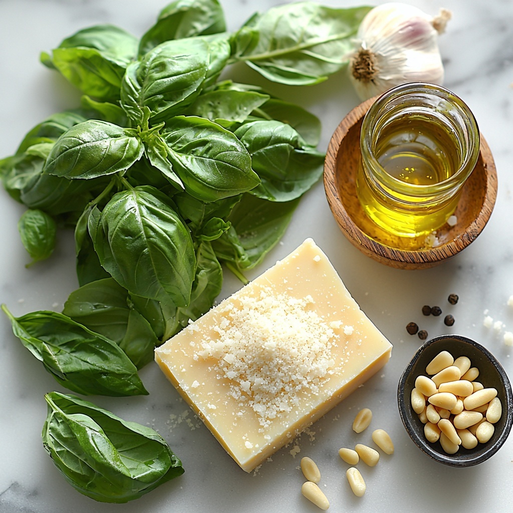 Gathering simple, fresh ingredients is key to making this sauce sing. Each component brings its own magic to the mix, combining texture, flavor, and that beautiful green hue that makes basil pesto so irresistible.