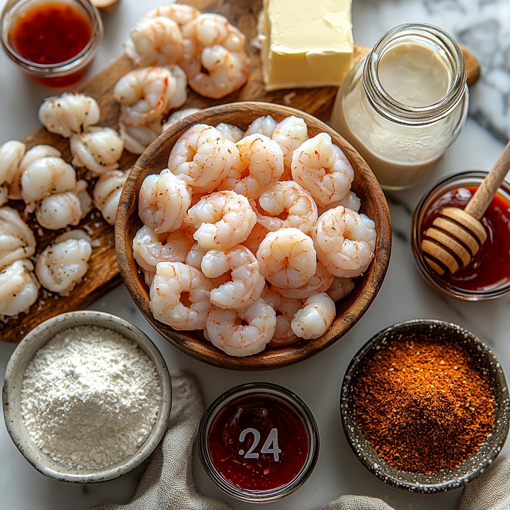 In a small saucepan, gently combine honey, hot sauce, butter, and (optionally) some red pepper flakes and apple cider vinegar over low heat. Stir until everything melts together into a smooth, glossy sauce. This glaze is where the magic comes in, adding bold sweetness and heat that elevate the fried shrimp’s flavor profile.