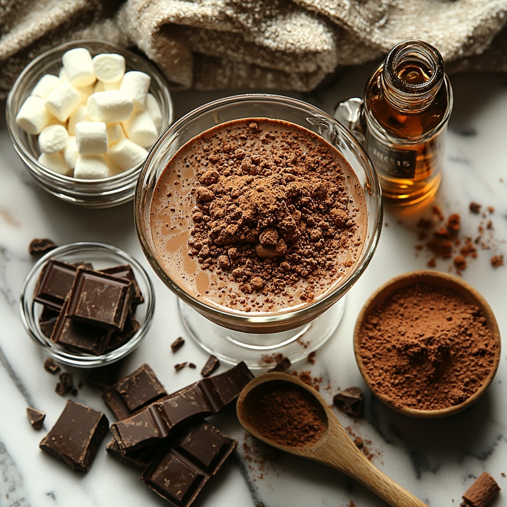 Simple, thoughtfully chosen ingredients are what make this Indulgent Christmas Hot Chocolate Martini for Cozy Nights Recipe shine. Each one plays a vital role in building the layers of flavor, warmth, and the creamy texture that makes this cocktail a true festive treat.