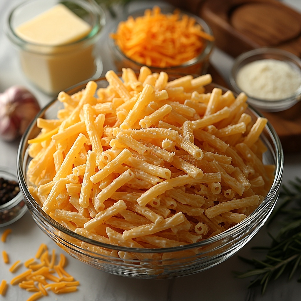 - Sharp Cheddar Cheese (1 cup, shredded): Brings sharp, tangy flavor that defines classic mac and cheese.