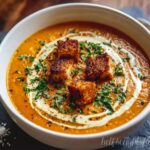 This soup pairs beautifully with crusty bread or warm garlic naan, perfect for dipping and soaking up every last drop. A light side salad of mixed greens with a tangy vinaigrette also complements the hearty soup nicely and adds a crisp freshness to the meal.