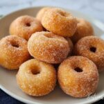 - Drain and Coat: Remove the fried doughnuts from the oil and place them onto paper towels to drain excess oil. While still warm, roll each doughnut thoroughly in the cinnamon sugar mixture to coat evenly.