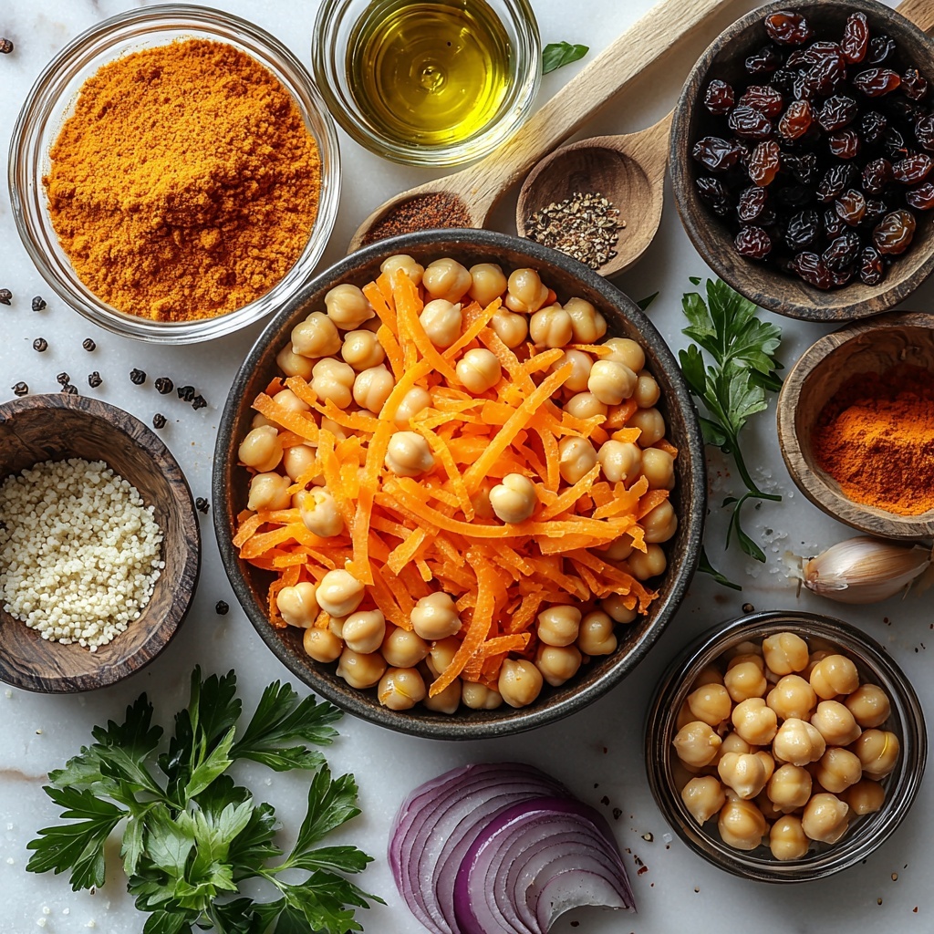To elevate your Moroccan-Spiced Chickpea and Carrot Couscous Salad Recipe, try garnishing with a sprinkle of toasted slivered almonds or pine nuts for a lovely crunch. Fresh mint leaves or extra chopped parsley add refreshing freshness and a bright green contrast that makes the salad pop visually and flavor-wise.