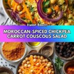 A vibrant Moroccan-Spiced Chickpea and Carrot Couscous Salad featuring fluffy couscous infused with warm spices, mixed with grated carrots, chickpeas, raisins, and fresh parsley, tossed in a zesty olive oil and lemon dressing. Perfect as a light lunch or a flavorful side dish.