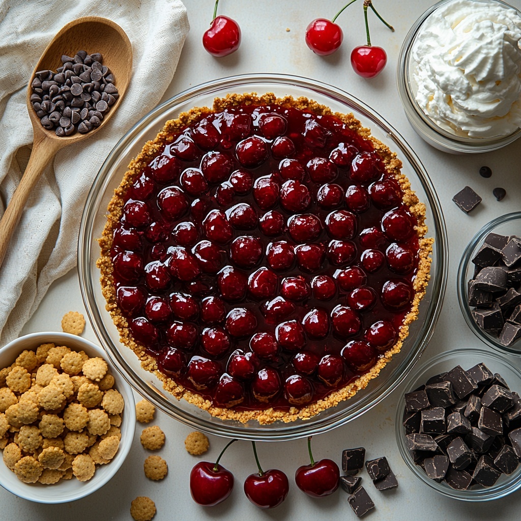 - Optional garnishes: Extra chocolate chips and cherries to make your pie pop visually and tastewise.