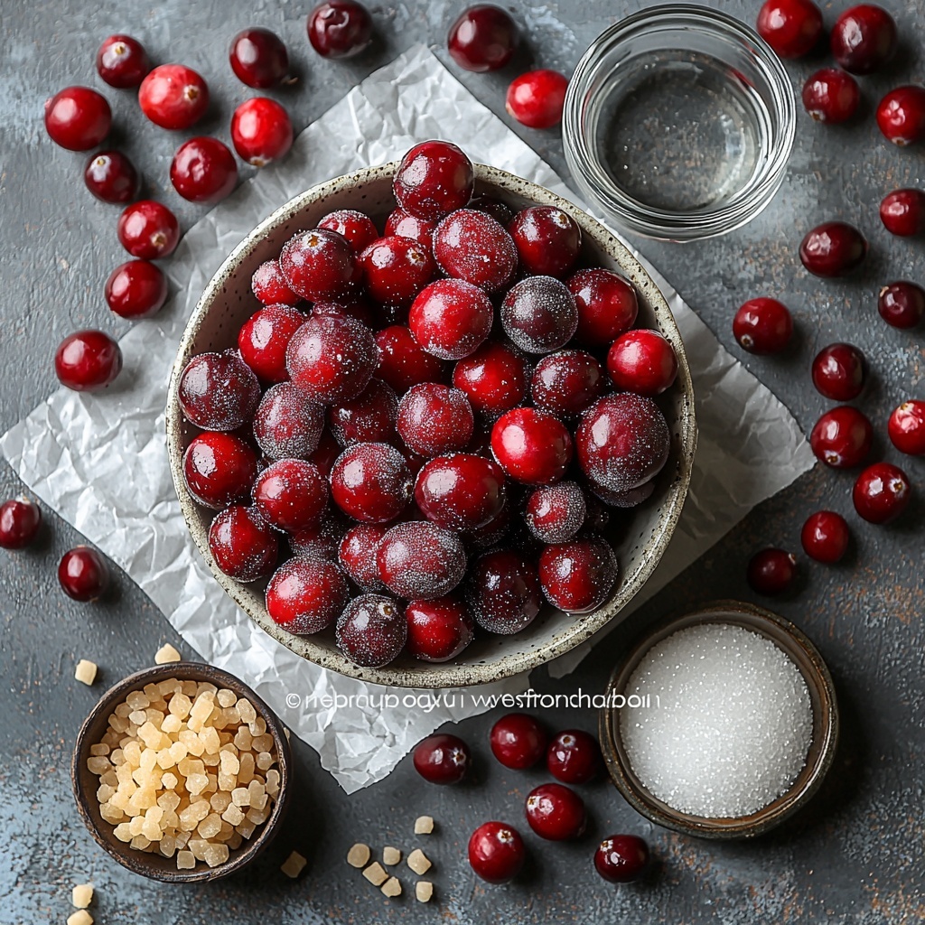 Getting ready to whip up this Sugared Cranberries Recipe is a breeze since it requires just a handful of pantry staples and fresh cranberries. Each ingredient plays its part: the tartness of the cranberries balances perfectly with the sweetness of sugar, and the water helps form that magical glaze that makes these cranberries sparkle like little jewels.