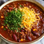Every bowl of chili comes alive with the right garnishes. Shredded Cheddar cheese is an absolute must for its melty sharpness, while a dollop of sour cream cools the palette and adds silkiness. For a burst of freshness and crunch, sprinkle diced green onions on top. Don’t forget a wedge of lime on the side to brighten each bite with just a splash of citrus tang.